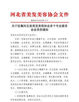 为进一步推动河北省大健康产业、日化连锁、身材管理、头皮健康、生发养发、医疗美容、生殖健康、科技护肤服务行业规范化、专业化、品牌化发展,凝聚行业力量,整合优质资源,搭建高效交流与合作平台,河北省美发美容协会现面向全省大健康产业、日化连锁、身材管理、头皮健康、生发养发、医疗美容、生殖健康、科技护肤等领域相关单位公开征集专业委员会会员。